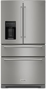 The difference is the details with this KitchenAid® Multi-Door French Door Refrigerator. Signature Platinum Interior wows from the inside out with wood-look trim and metallic touchpoints. The FreshChill™ Full-Width Refrigerated Drawer lets you customize temperature settings for the items you reach for most. And a Three-Tier Freezer Drawer conveniently organizes frozen foods so they're easy to find.Read More