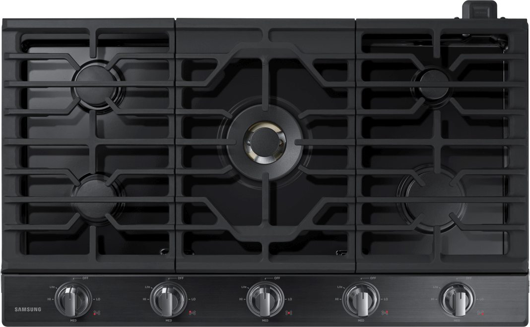 Blue illuminated knobs let you know when the cooktop is on or off.