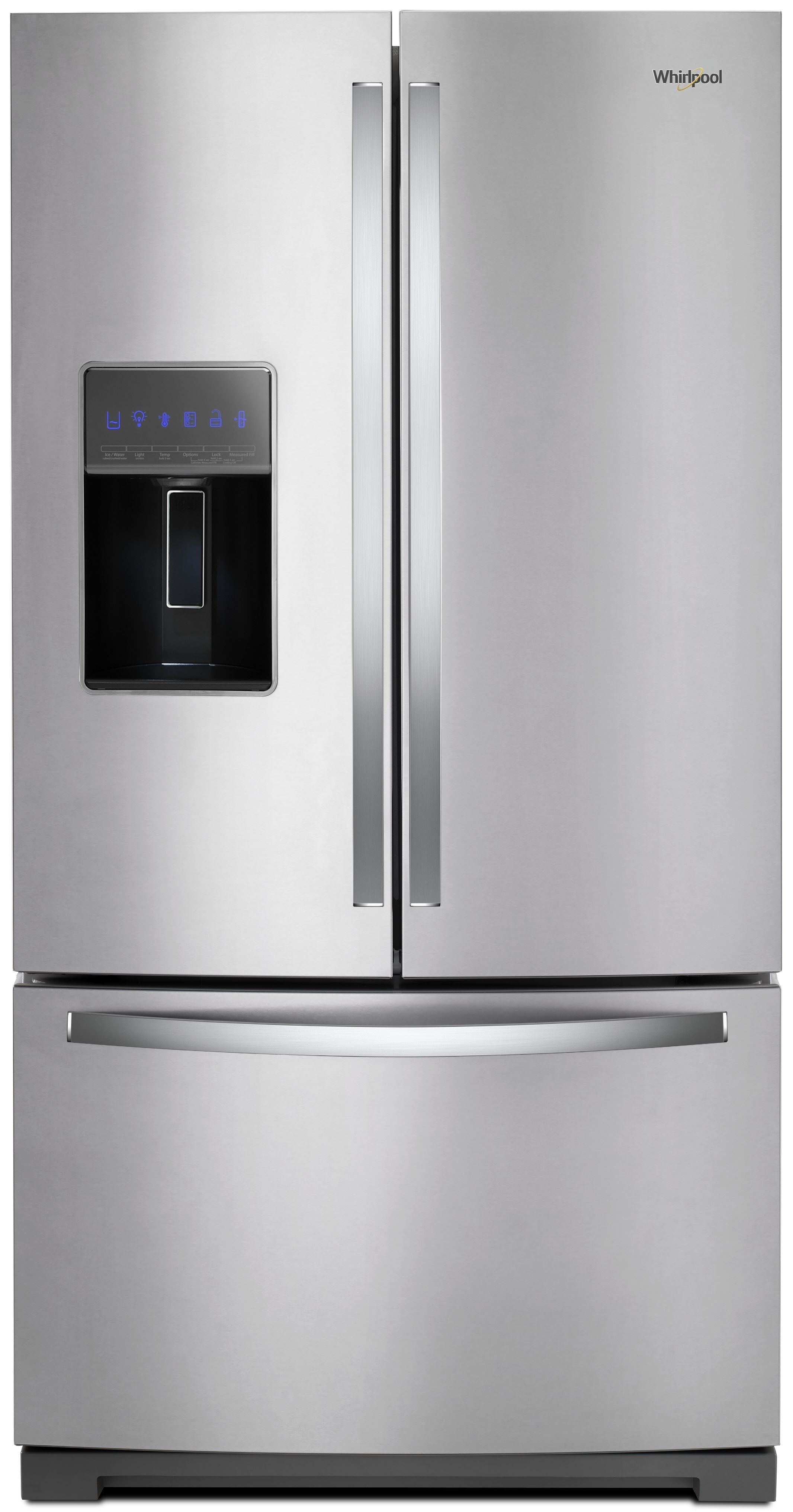 Get more room with purposeful storage spaces for the items you use most in this French door refrigerator with large freezer. Features such as the platter pocket, In-Door-Ice® storage, LED lights and a deli drawer make your family's favorites easy to fit and find. This ENERGY STAR® refrigerator also has a fingerprint-resistant exterior that resists smudges and easily wipes clean.Read More